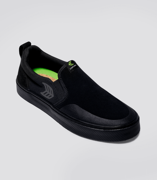 All Black Suede and Canvas Ash Grey Logo SLIP-ON PRO