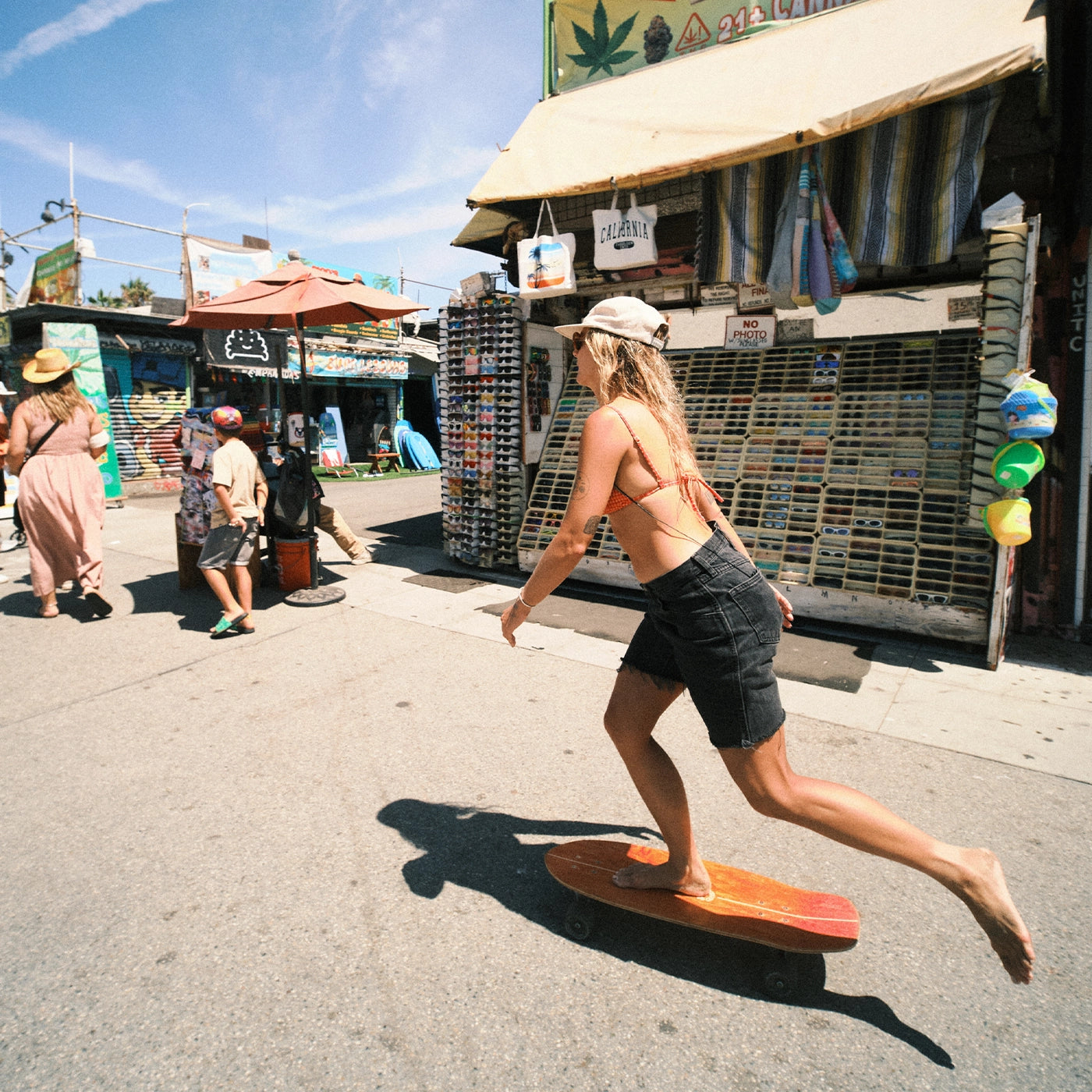 There’s never a dull moment in Venice – especially on the boardwalk. With surf in one direction and the iconic Venice skatepark in another, street vendors, artists, and award-winning restaurants, this unforgettable area of LA is bursting with life. Lucy guides us from one end of the boardwalk to another after catching a few waves and grabbing a post Surf Acai bowl, giving us a tour of the sights and a glimpse into the infectious energy.