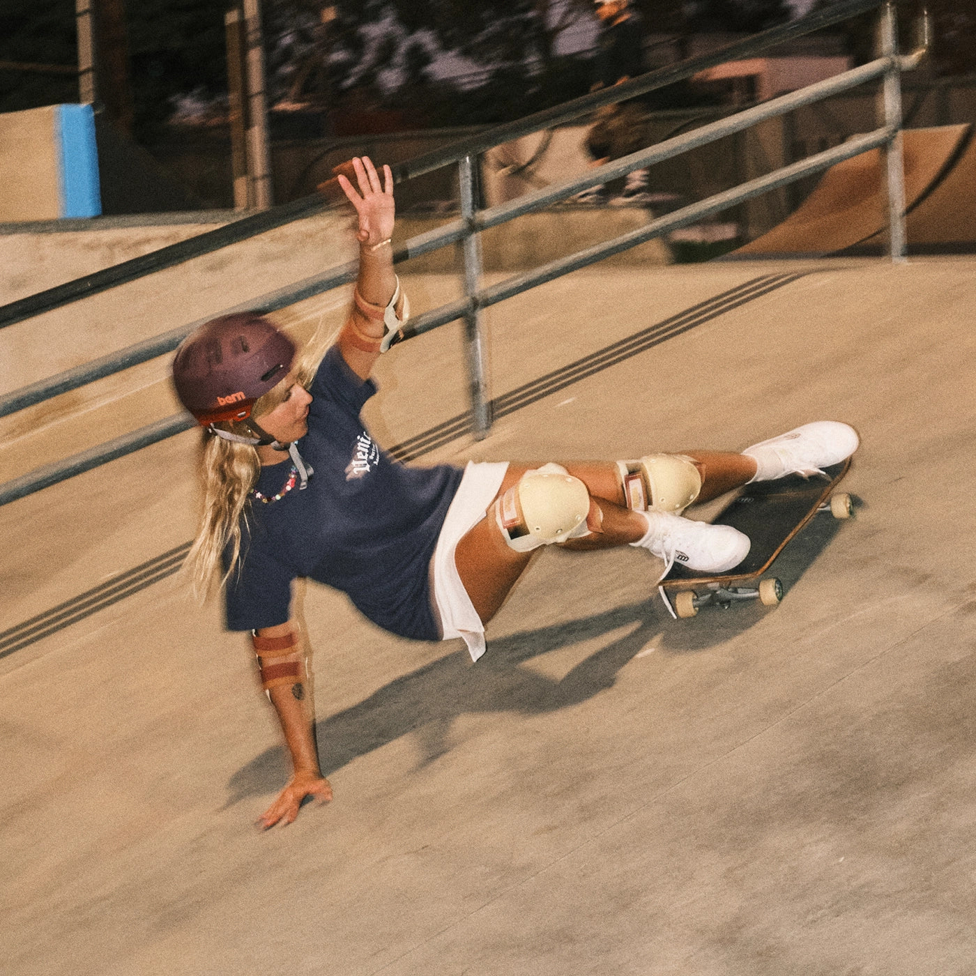 Bordering Venice in Santa Monica, The Cove is a community skatepark that is a hub for Lucy and locals. A controlled community park that checks you in to skate, The Cove provides a safe, inviting atmosphere for the GrlSwirl community, and all skaters.