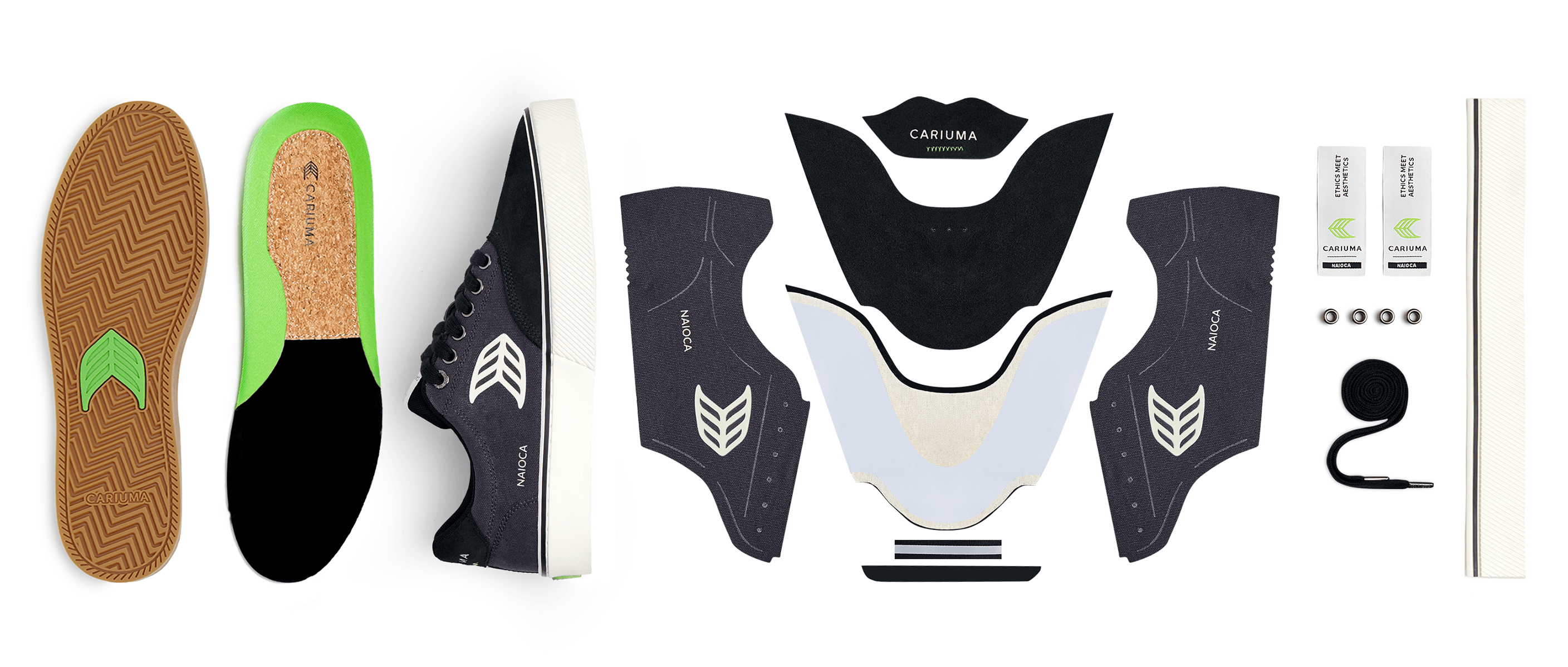 • Laces: Made with rPET + organic cotton, and debossed metal aglets