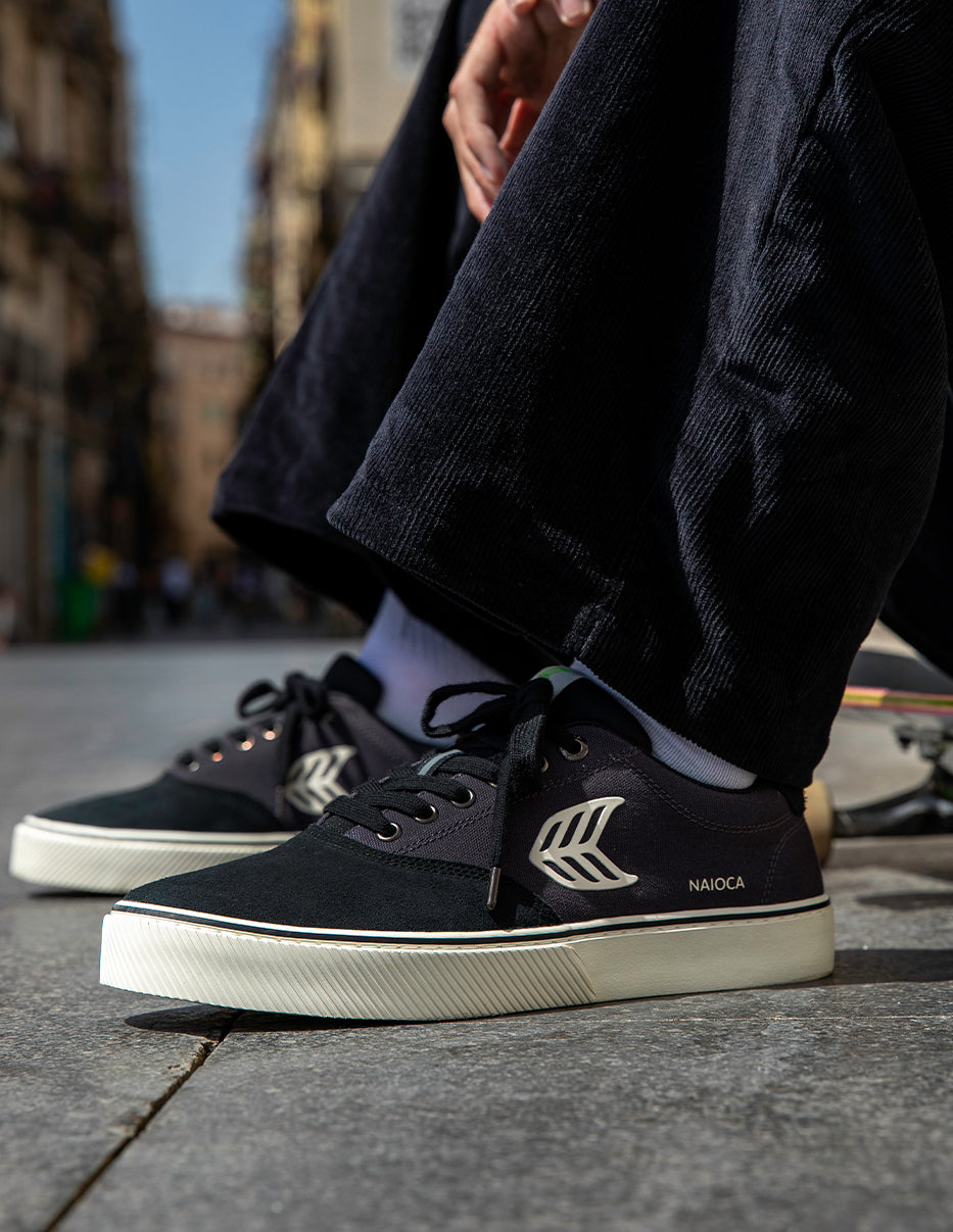 Shop the NAIOCA PRO All Black Suede and Canvas Ash Grey Logo Sneaker