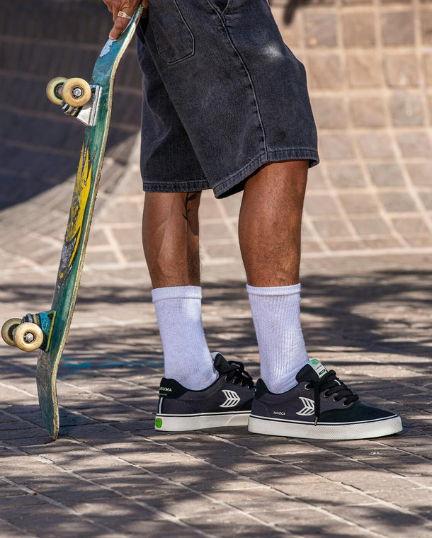 Crafted for optimal performance, boardfeel, and stability, the magic of NAIOCA Pro is all in the durable details. Not only did we add a double layer of rubber to our enhanced foxing; we snuck in extra reinforcement underneath the toe box, cut from premium suede sourced from Leather Working Group Gold Rated suppliers.