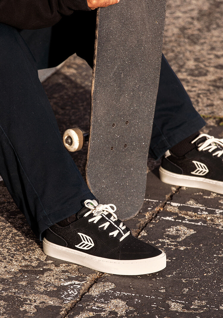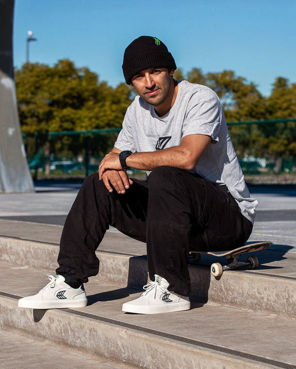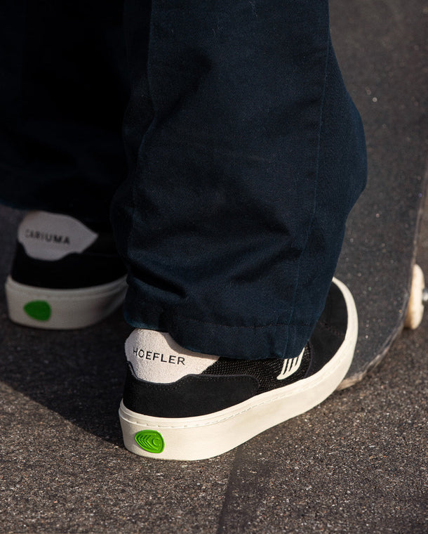 The Hoefler T20 Pro is a heavy-duty skate shoe, consciously crafted with LWG-certified suede, recycled mesh, recycled rubber and full cushion for a comfortable and good-looking skate shoe – designed to deliver.